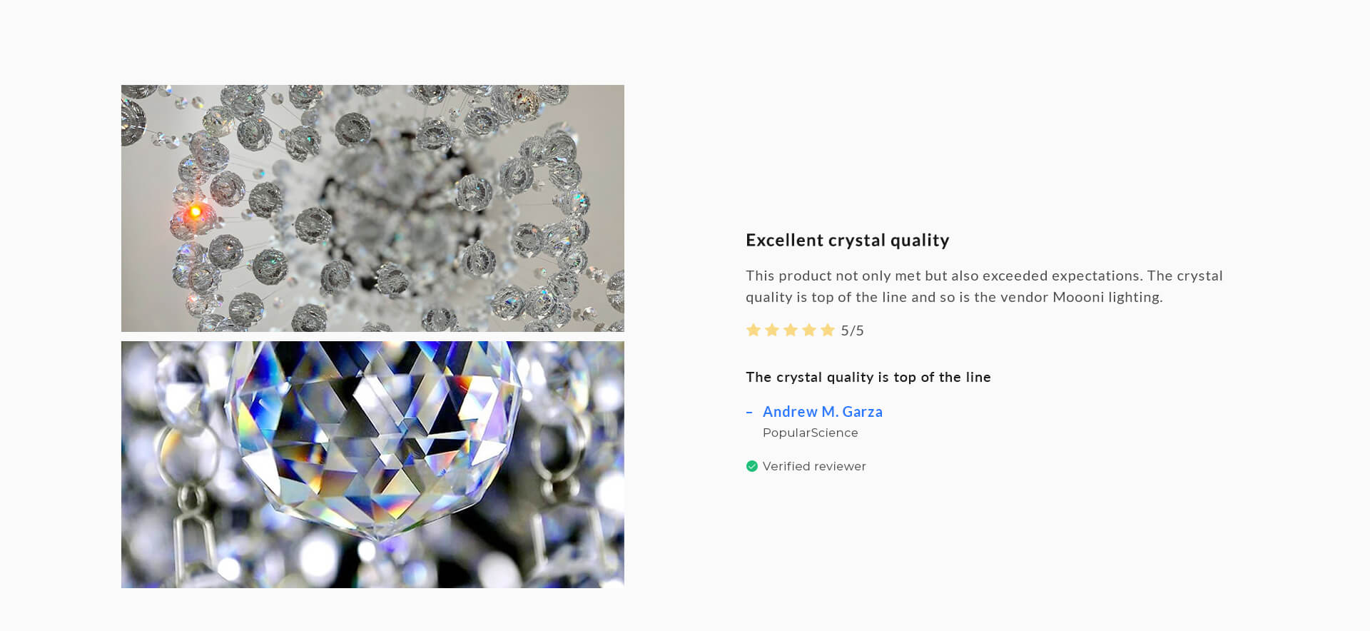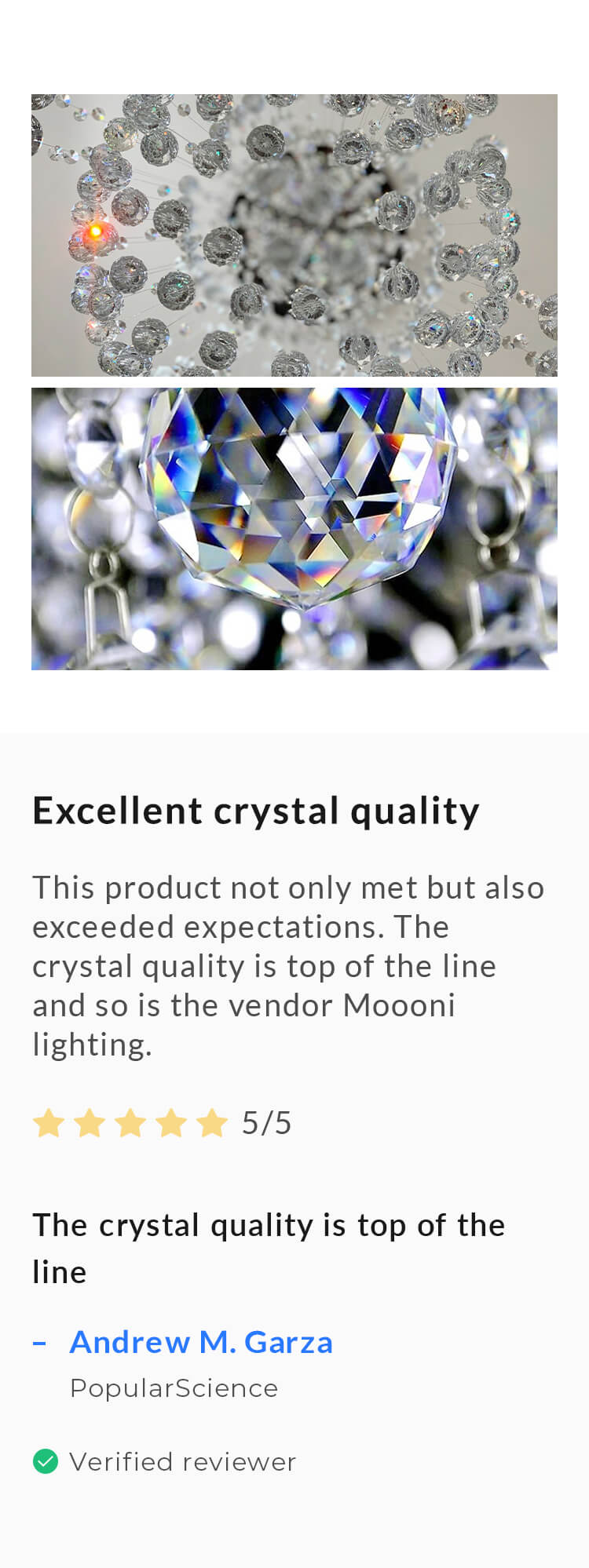 | Materials | K9 Crystal, Stainless Steel |