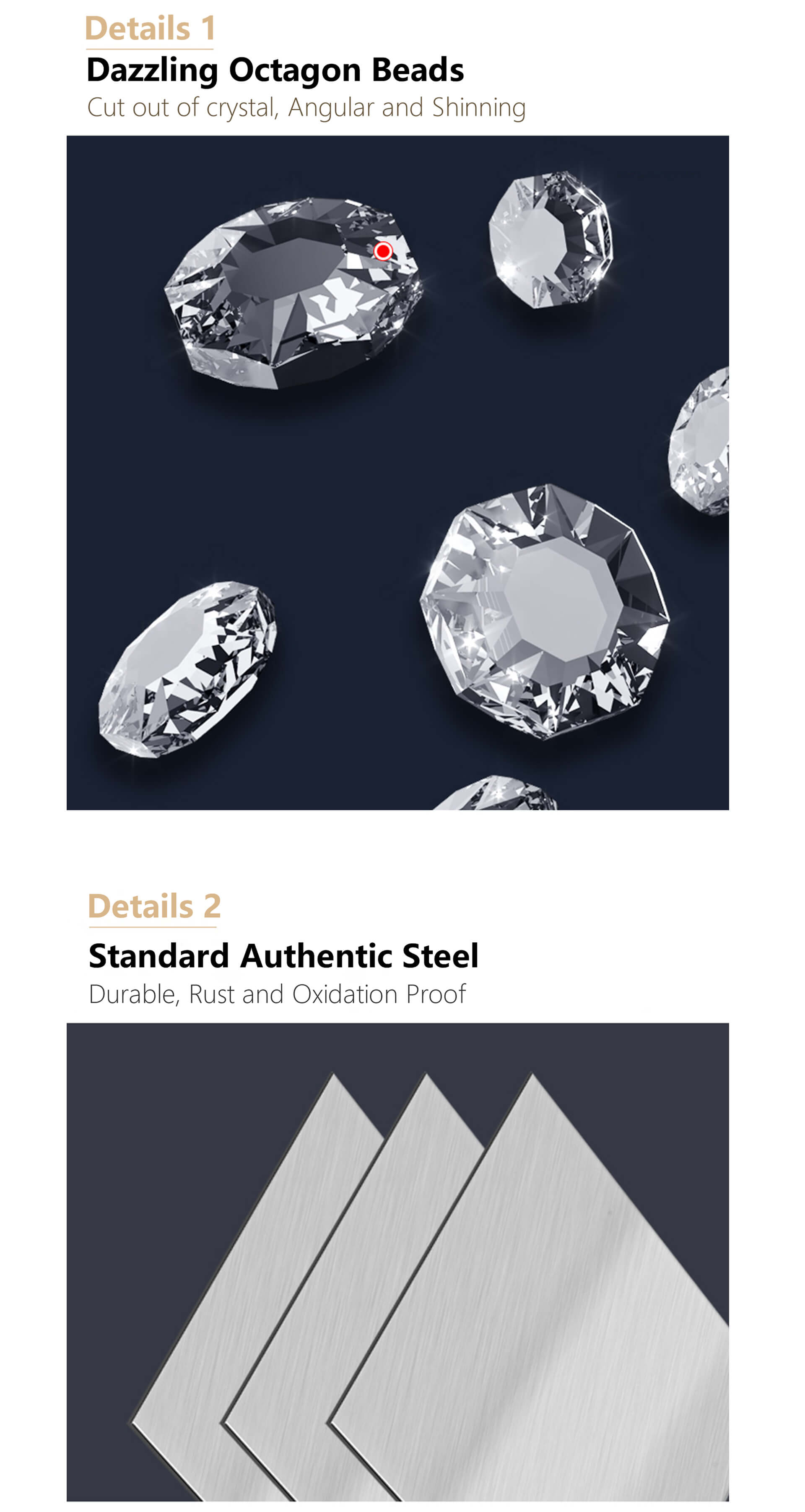 - Material: Top Crystal, Polished Stainless Steel Base.